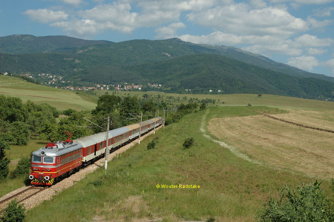 BDZ 44.090 + 7 BDZ coaches as train Fast 5623 (Sofia, BG - Kulata, BG) at Dragicevo (BG), 25 June 2005.