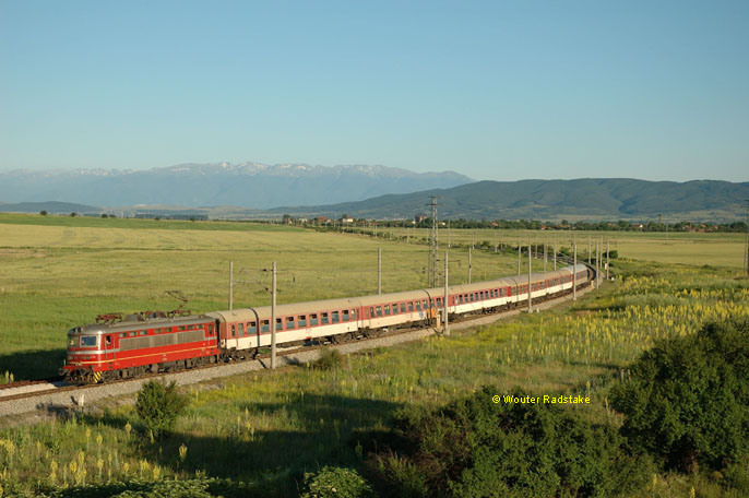 BDZ 44.100 + 6 BDZ coaches as train Fast 5610 (Kulata, BG - Sofia, BG) at Radomir (BG), 25 June 2005.