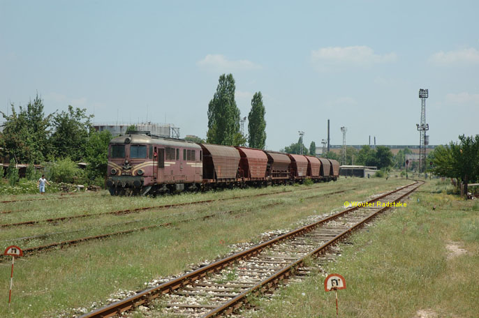 BDZ 06.102 + freight train from the Haskovo factory to Haskovo (BG) at Haskovo (BG), 27 June 2005.