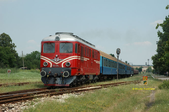 BDZ 06.094 + 4 BDZ as train Ord 40161 (Dimitrovgrad, BG - Momchilgrad, BG) at Haskovo (BG), 27 June 2005.