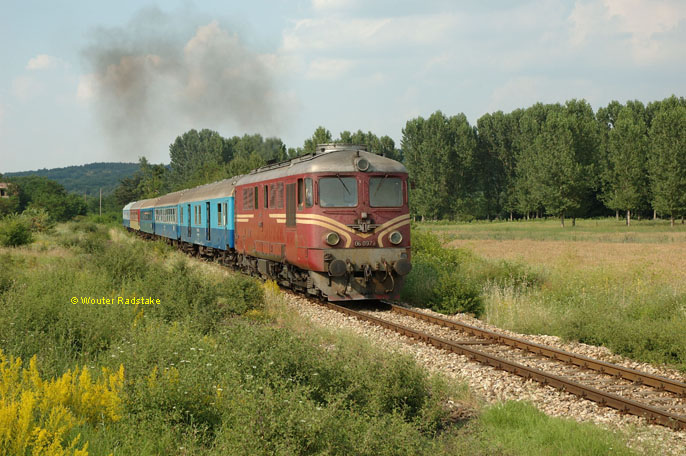 BDZ 06.097 + 5 BDZ as train Ord 10145 (Plovdiv, BG - Svilengrad, BG) at Preslavec (BG), 27 June 2005.