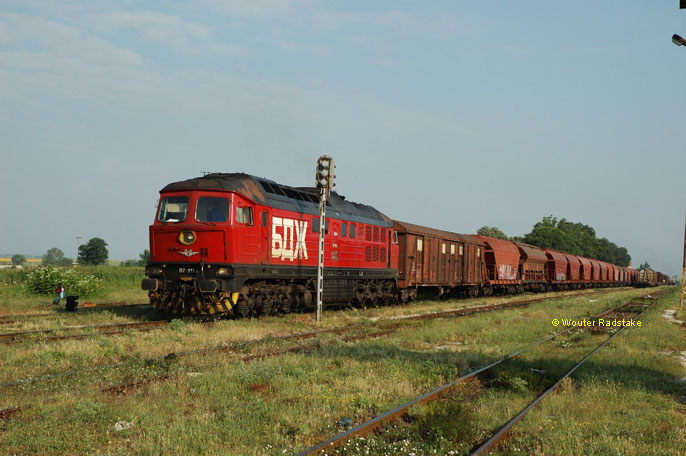 BDZ 07.111 + grain train from Dimitrovgrad (BG) to Svilengrad (BG) at Svilengrad (BG), 29 June 2005.