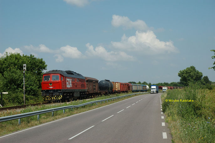 BDZ 07.070 + mixed freight train from Dimitrovgrad (BG) to Svilengrad (BG) at Svilengrad (BG), 29 June 2005.