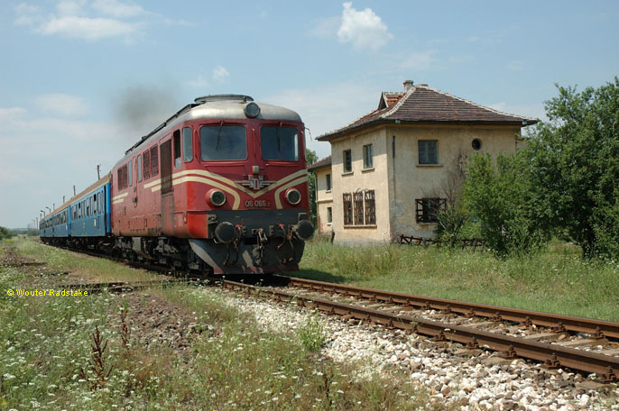 BDZ 06.066 + 4 BDZ coaches as train Ord 40161 (Dimitrovgrad, BG - Momchilgrad, BG) at Uzundzkovo (BG), 29 June 2005.