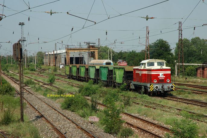 Galabovo mine 52.275 with a ballast train at Galabovo mine (BG) station 'Razdelna' (which is not situated at the namesake town further west), 30 June 2005.