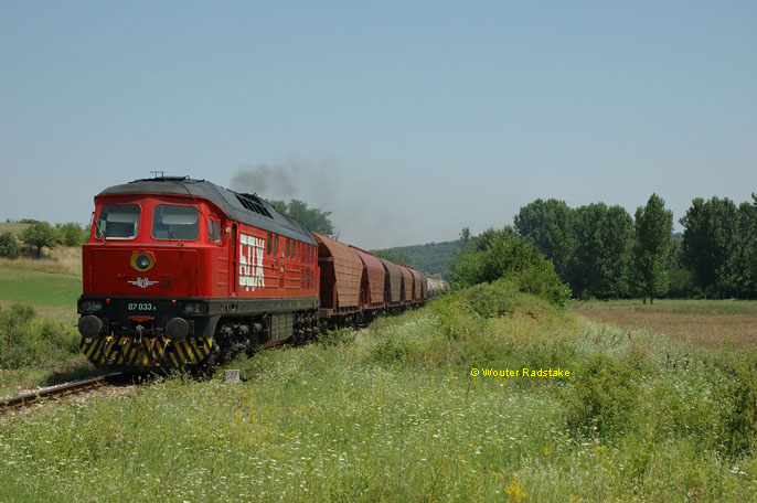 BDZ 07.033 + mixed freight train from Dimitrovgrad (BG) to Svilengrad (BG) at Preslavec (BG), 30 June 2005.