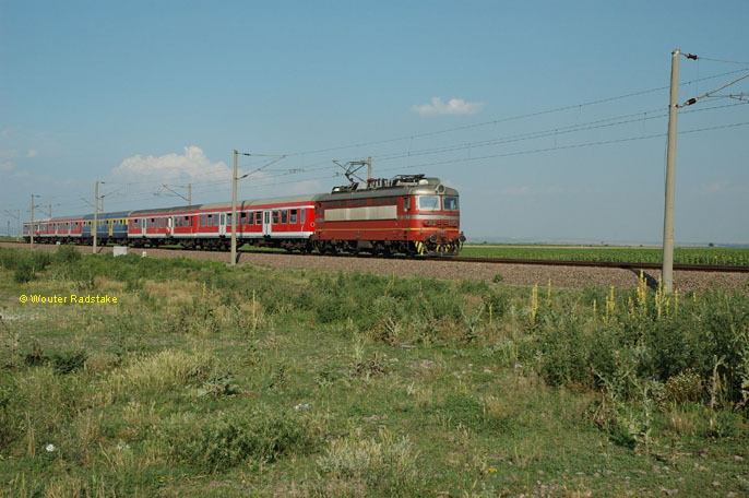 BDZ 45.155 + 5 ex-DB BDZ coaches as train UBV 8606 (Burgas, BG - Plovdiv, BG) at Straldza (BG), 30 June 2005.