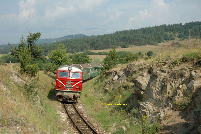 BDZ 75.006 + 5 BDZ coaches as train Ord 16102 (Dobrinishte, BG - Septemvri, BG) at Kostandovo (BG), 1 July 2005.
