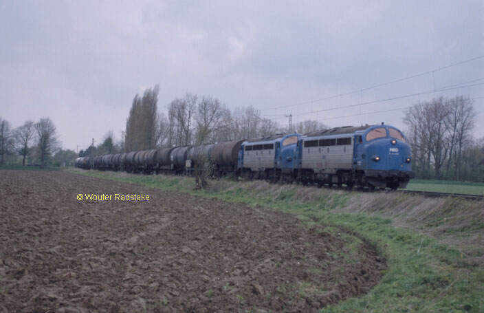 EuroTrac V170 1149 + V170 1147 ride with an oil train through Praest (BRD) just after departure from Emmerich (BRD) to Passau (AU) on 28 April 2002.